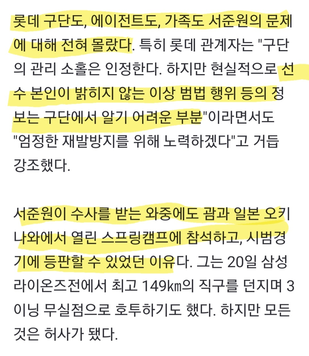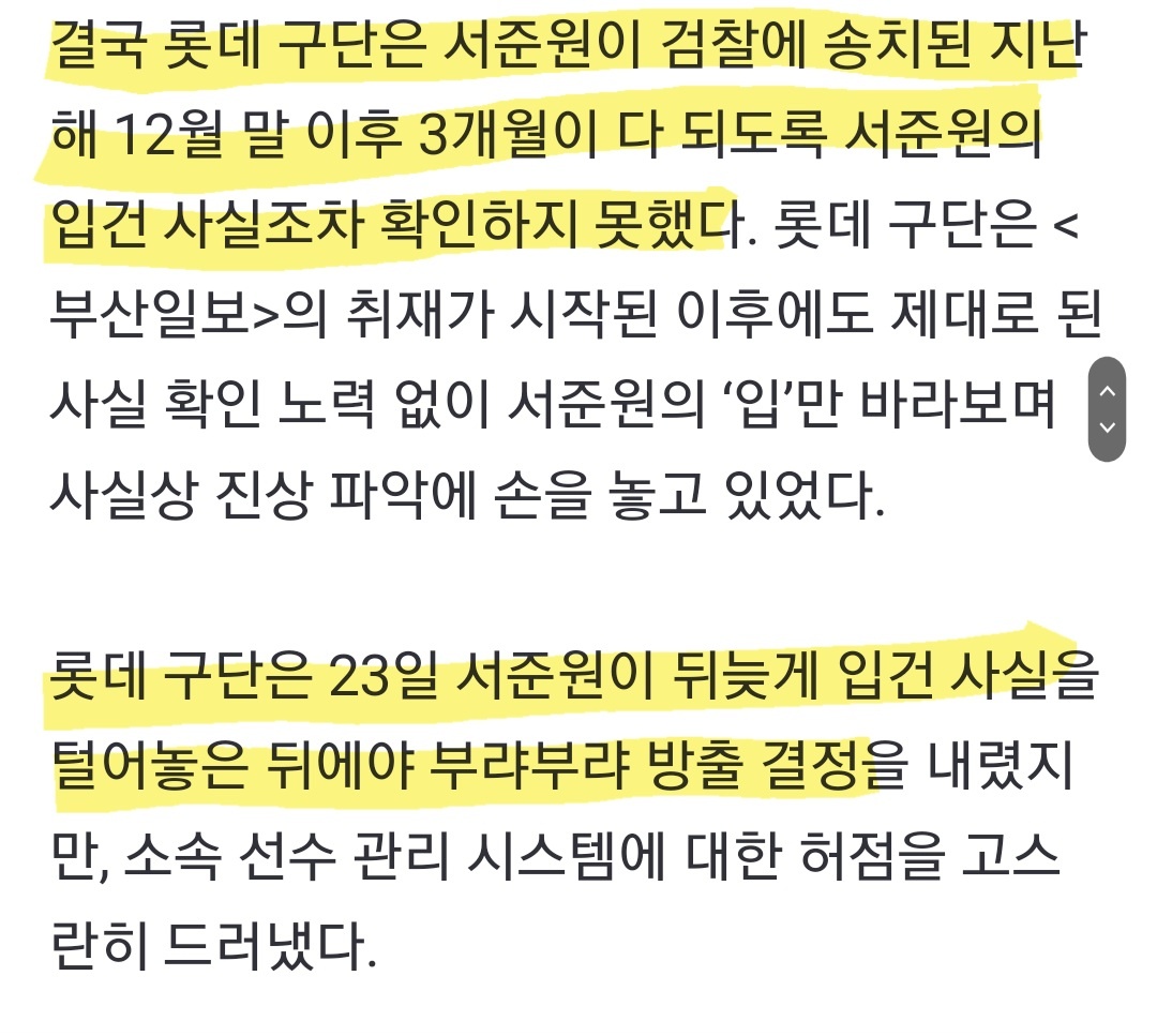 그제서야 롯데는 서준원의 자백을 통해